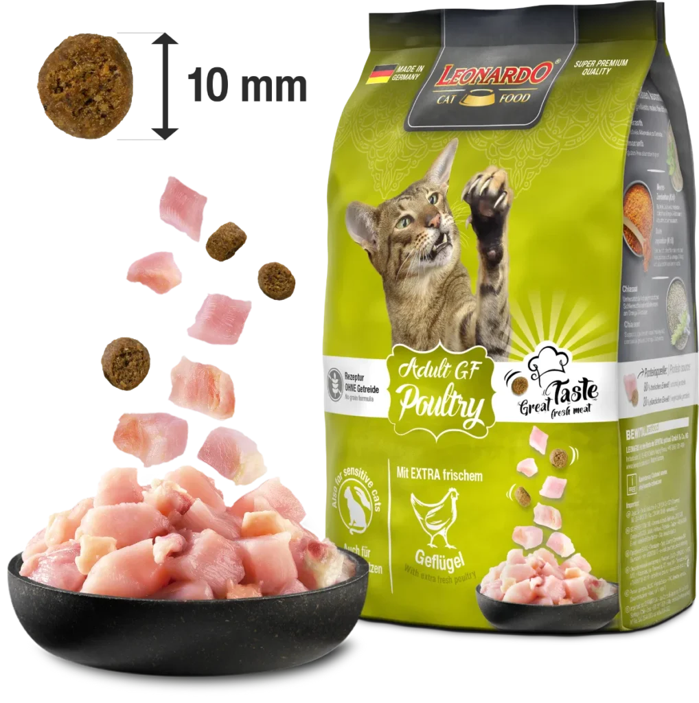 Aliments secs sans céréales pour chats adultes à base de volaille