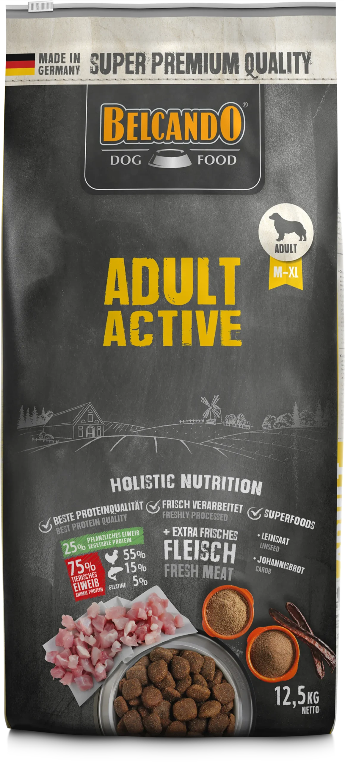 Le Belcando Adult Active est une formule spécialement conçue pour les chiens adultes ayant une activité physique plus élevée ou un mode de vie sportif.