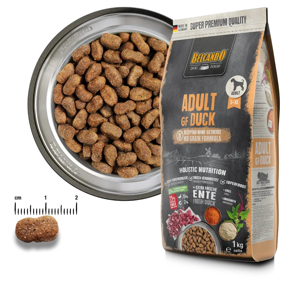 Le Belcando Adult GF Canard convient parfaitement aux chiens adultes sensibles aux céréales ou au gluten, ainsi qu’à ceux ayant une digestion délicate ou des besoins nutritionnels spécifiques. Il est adapté à toutes les races et tailles, et particulièrement recommandé pour les chiens à peau sensible ou au pelage terne.