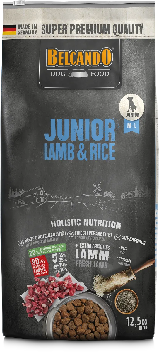 Le Belcando Junior Lamb & Rice offre une alimentation complète, hautement digestible et parfaitement adaptée aux jeunes chiens en phase de croissance.
