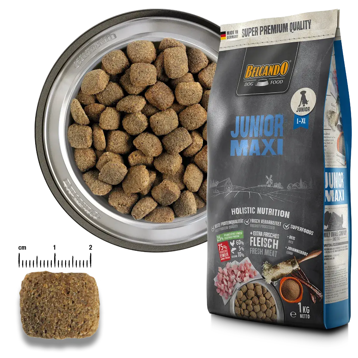 Le Belcando Junior Maxi est spécialement formulé pour les jeunes chiens de grandes races (à partir de 4 mois) dont la croissance doit être soutenue de façon adaptée et harmonieuse.