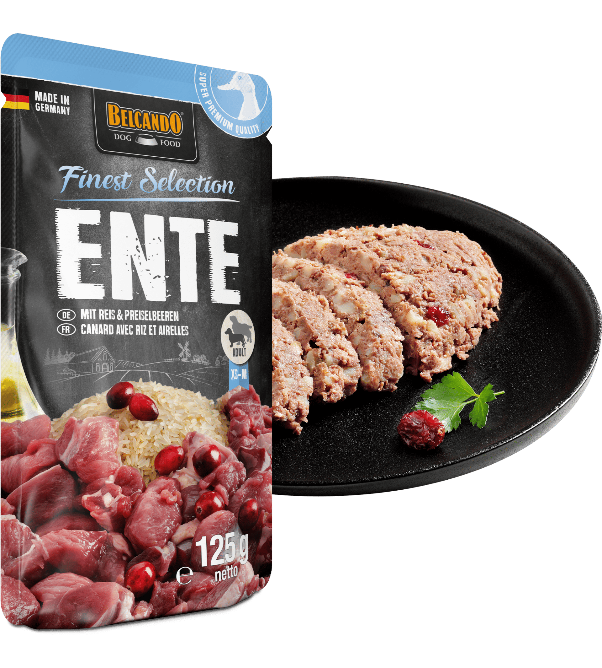 Le Belcando Sachet Fraîcheur Canard avec riz et airelles est un aliment complet pour chiens adultes :
