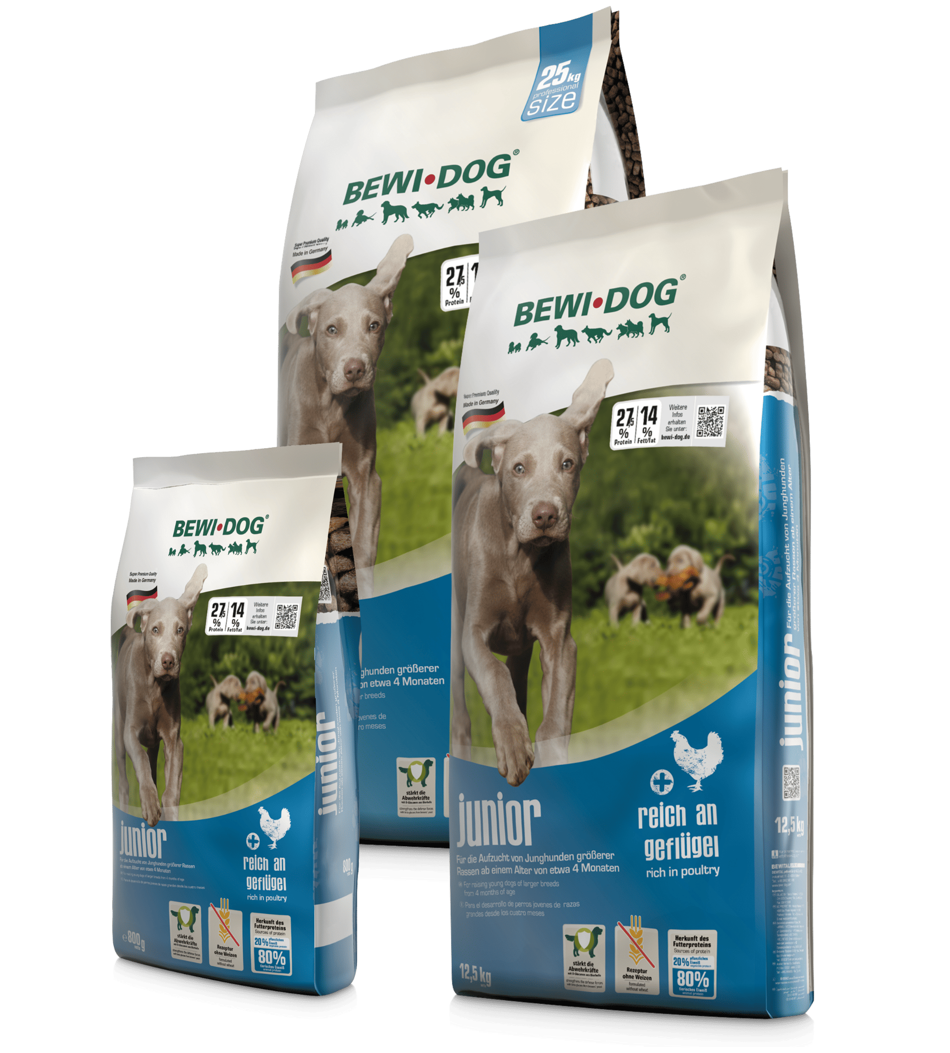 Ainsi, le Bewi Dog Junior convient particulièrement aux chiots de races moyennes et grandes, dont la croissance doit être régulière et contrôlée pour éviter tout risque articulaire.