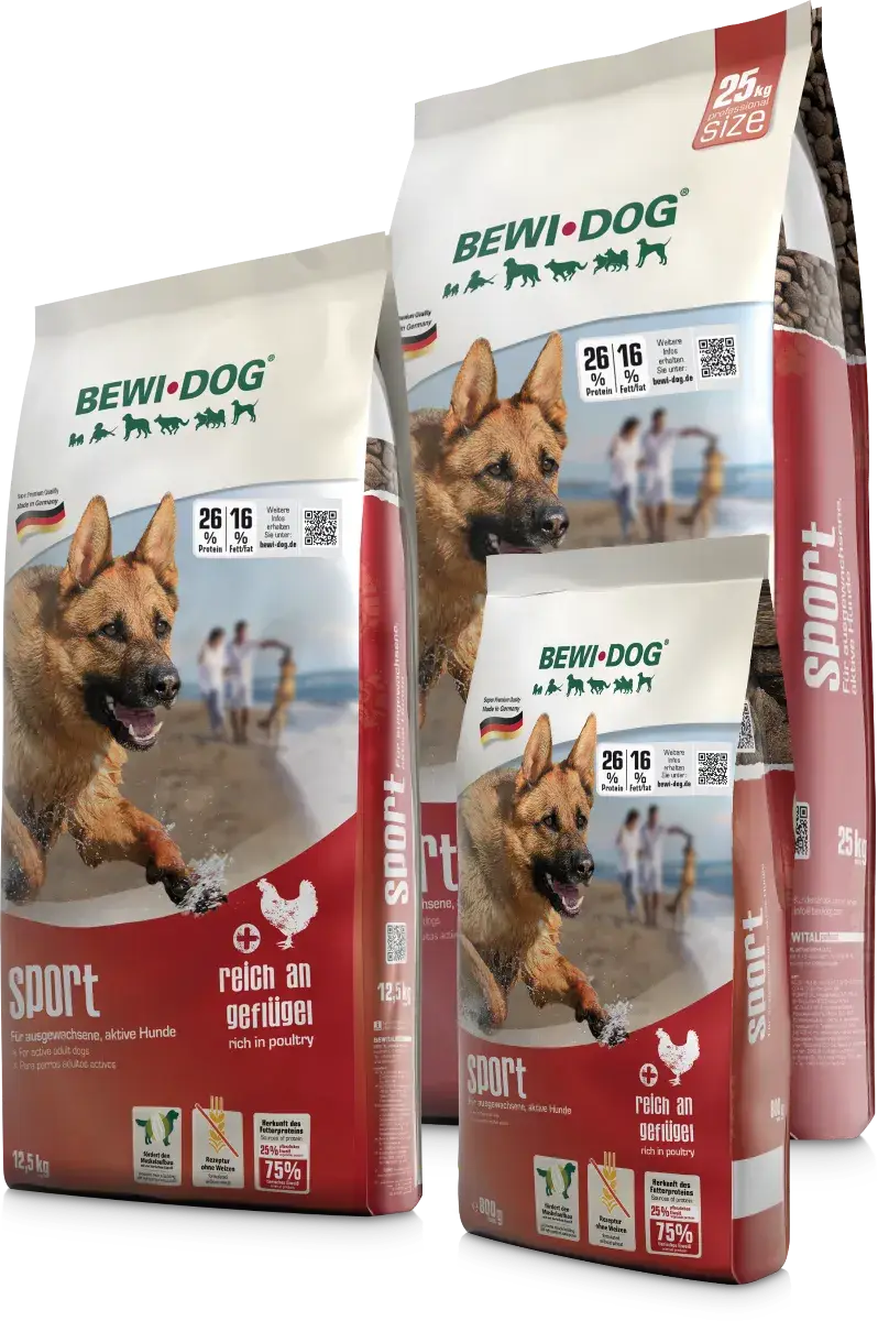 Le Bewi Dog Sport convient aux chiens adultes de toutes tailles ayant une activité physique élevée ou soutenue. Il est particulièrement recommandé pour les chiens de sport, de travail, de chasse ou les chiens très dynamiques ayant des besoins énergétiques supérieurs à la moyenne.