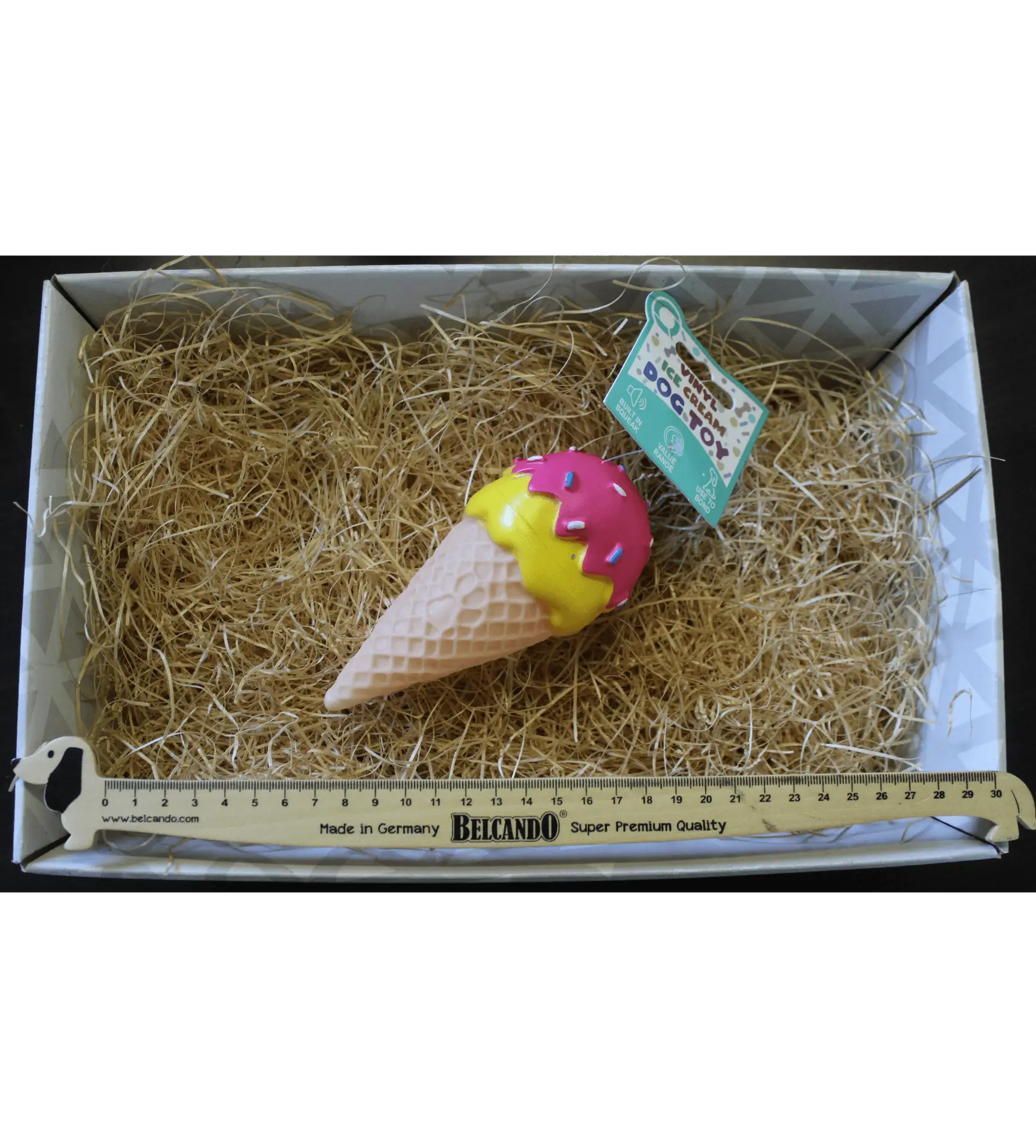 Faites fondre le cœur de votre compagnon avec le Jouet Glace Sonore pour Chien, un jouet en vinyle coloré aussi drôle qu’attrayant.