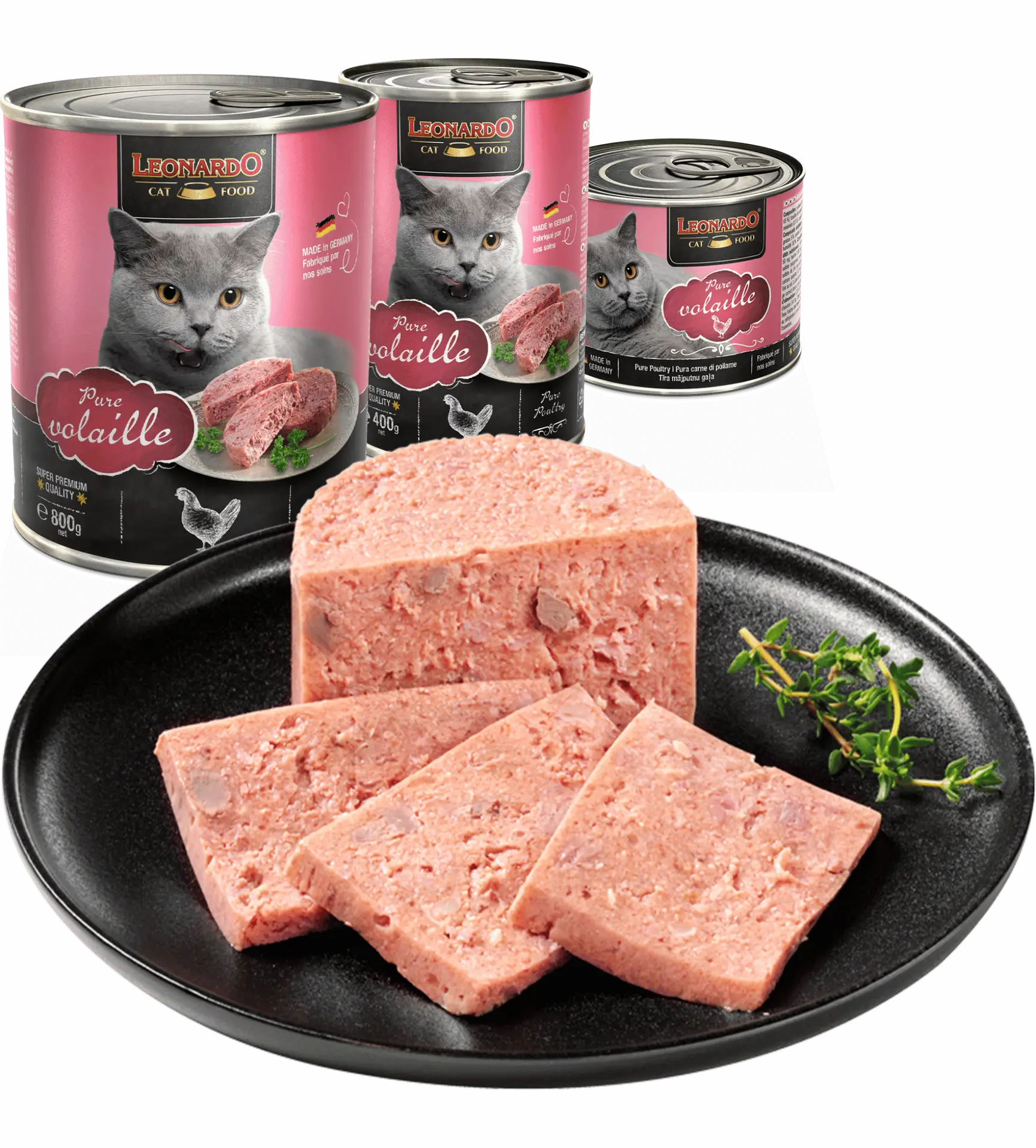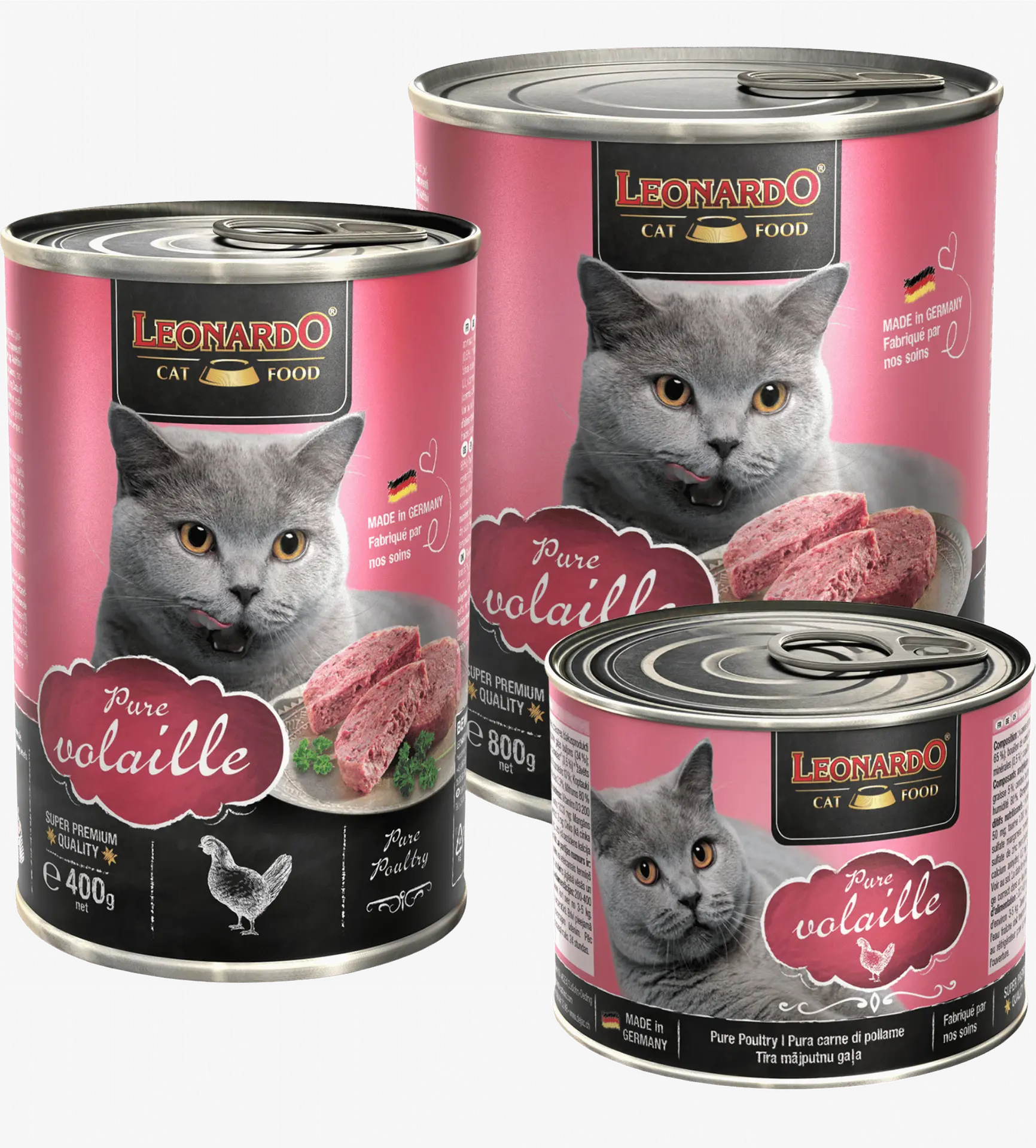 Fabriquées en Allemagne selon des standards de qualité stricts, les pâtées Leonardo Volaille sont élaborées sans céréales ni sucres ajoutés, sans gluten, sans soja, sans colorants artificiels ni conservateurs chimiques, afin d’offrir une alimentation saine, naturelle et hautement digestible.