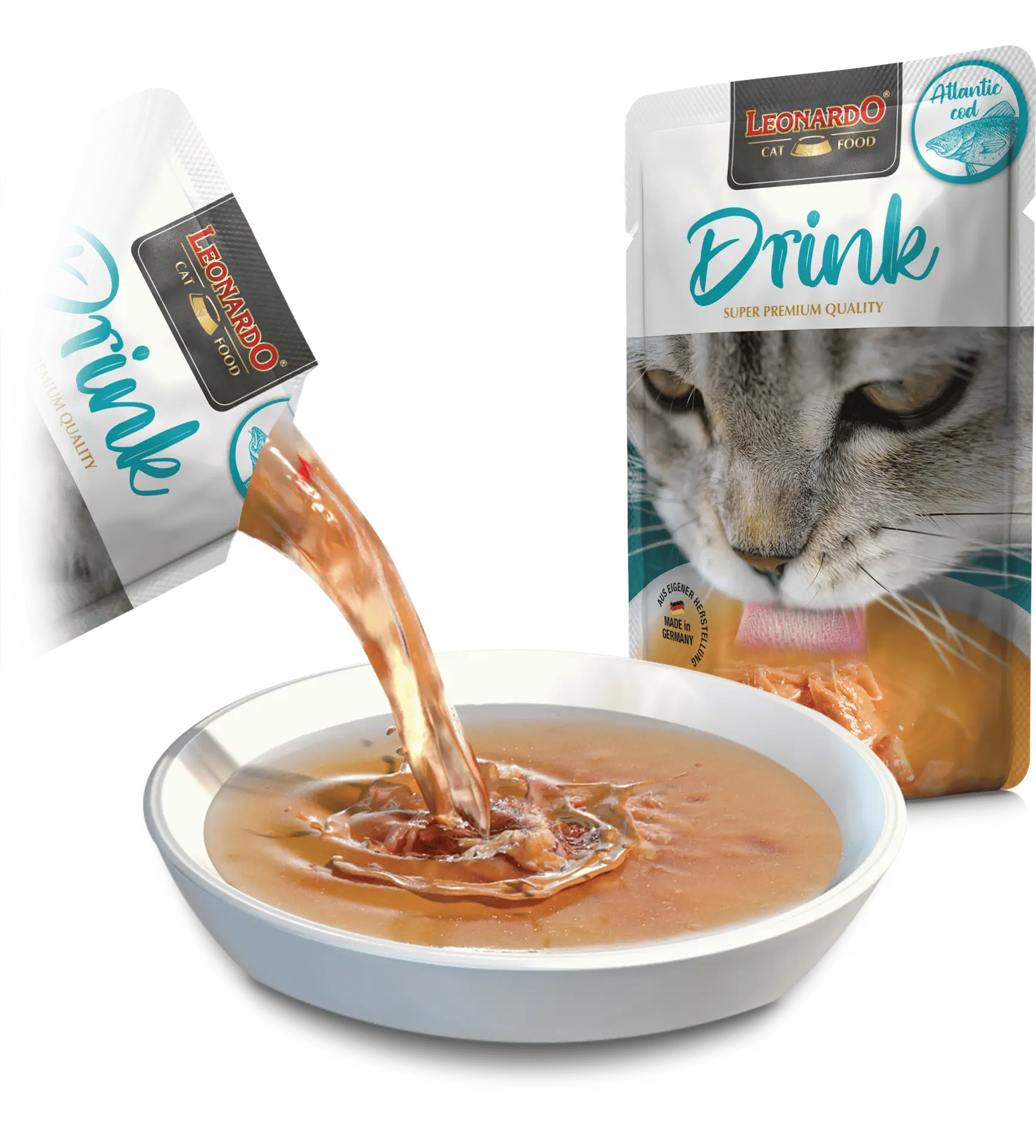 Leonardo Drink Atlantic Cod est la solution idéale pour améliorer l’hydratation de votre chat tout en lui offrant une recette savoureuse haut de gamme.