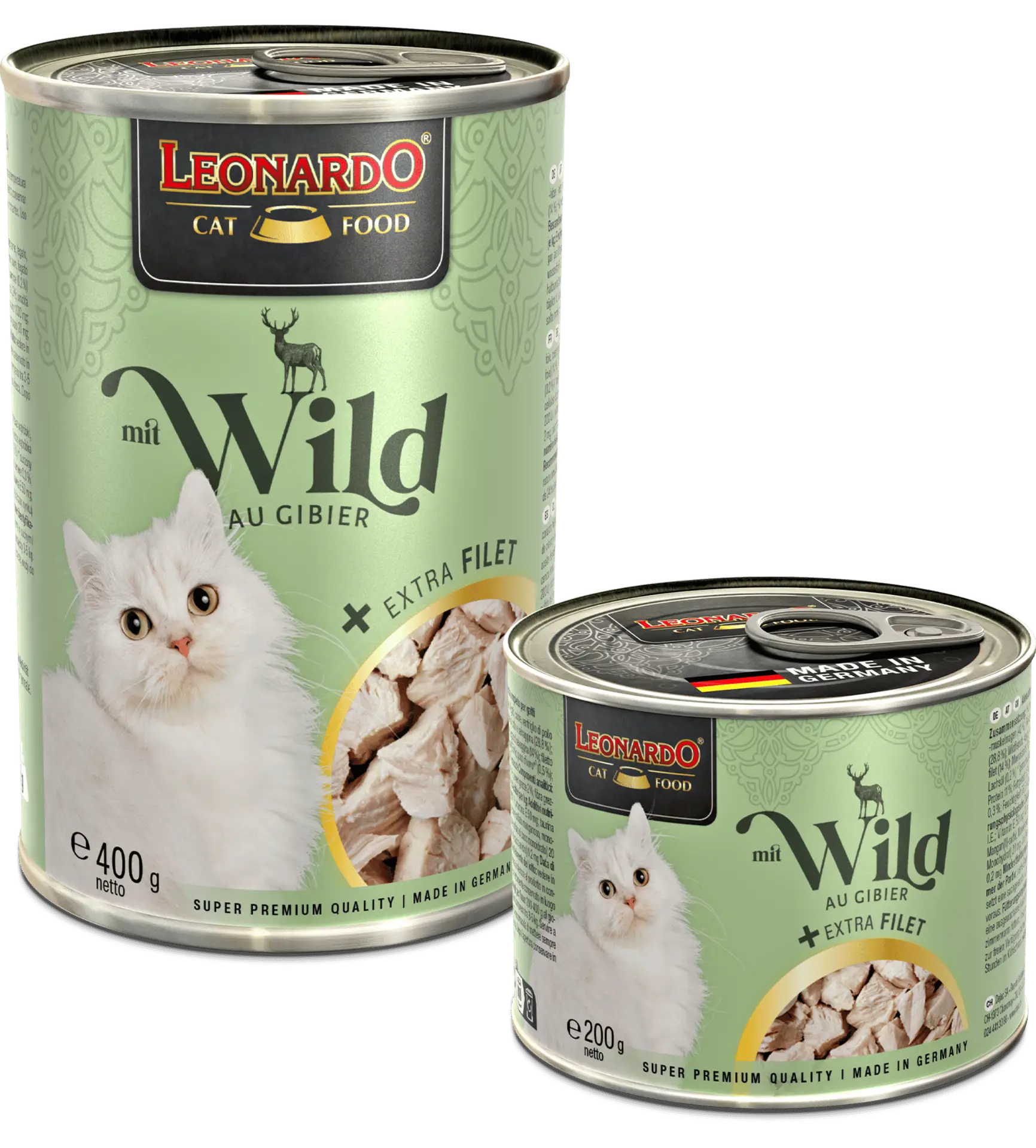 Leonardo Gibier + Extra Filet est une pâtée super premium pour chat adulte élaborée à partir de viande de gibier savoureuse, enrichie de délicieux morceaux de filet de poulet.