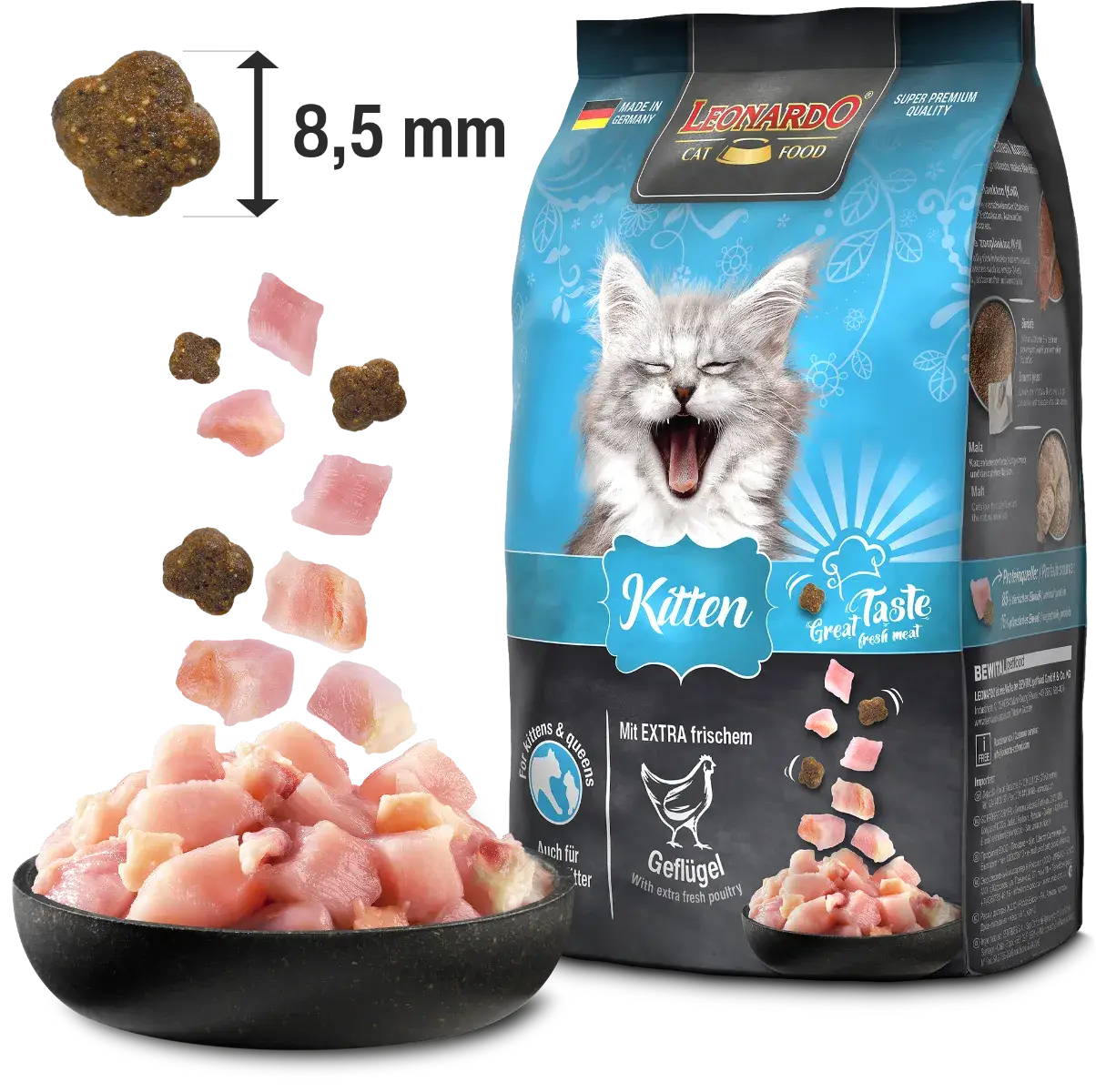 Le Leonardo Kitten se distingue par une composition premium, adaptée aux besoins spécifiques des chatons :