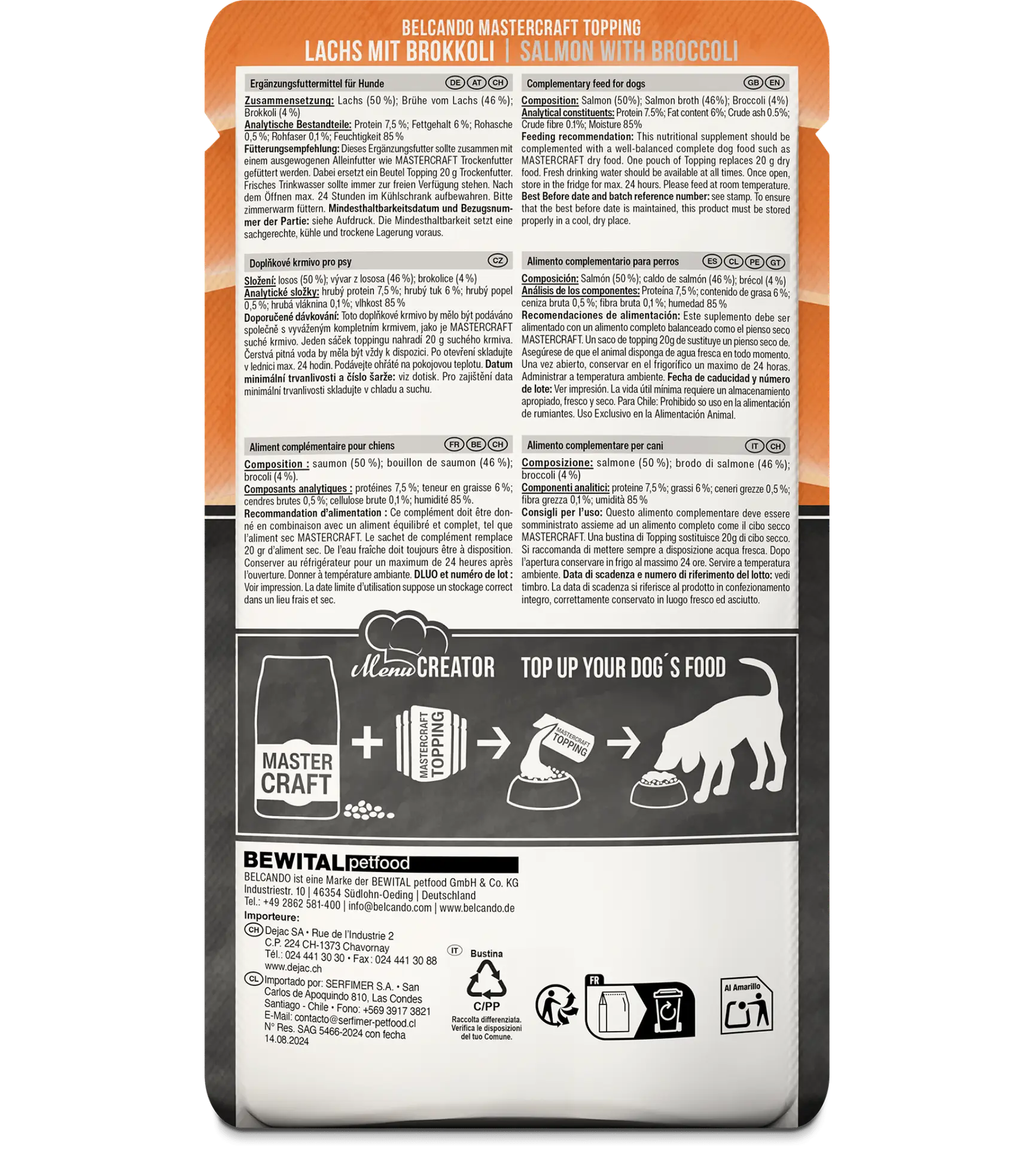 Le Belcando Mastercraft Topping Saumon avec brocoli est un aliment complémentaire pour chiens adultes :