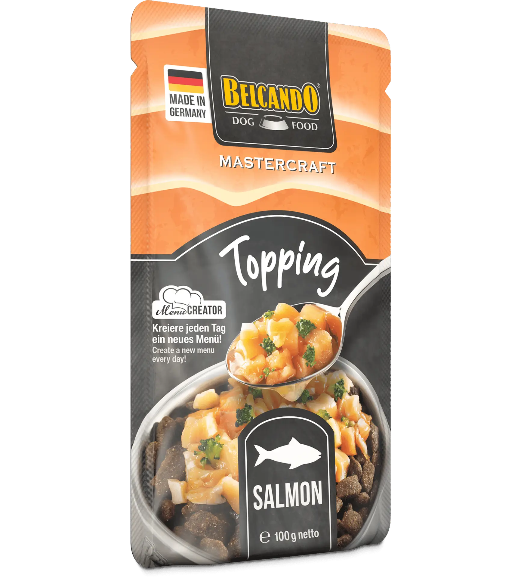 Le Belcando Mastercraft Topping Saumon avec brocoli convient parfaitement comme complément alimentaire pour chiens adultes de toutes tailles et races.
